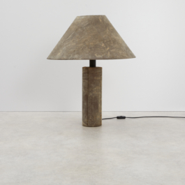 The "Korklampe II" designed by Wilhelm Zanoth and Maurer for Design M in 1974, Germany, is an iconic piece with a natural and minimalist look. Its base and shade are made from thin slices of dark cork sheet veneer, and its impressive size makes it instantly recognisable and desirable.