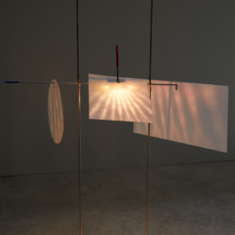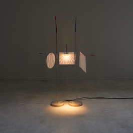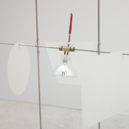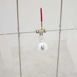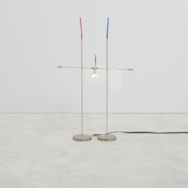 This minimalist halogen table lamp "Fukushu" by the renowned German designer Ingo Maurer (1932-2019) is a rare and innovative piece of lighting design. Created in 1986 for Design M in Munich, Germany, this lamp showcases Maurer's experimental and innovative approach to light design, earning him the nickname "poet of light." The "Fukushu" lamp consists of a nickel-plated metal base, metal rods, and three minimalist shades in matt PVC. The height of the halogen light source is adjustable, and the light is controlled by a TouchTronic system and a sensor dimmer that can be turned on and off by simply touching the metal base.