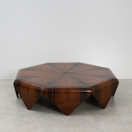 Beautiful and rare 'Petalas' coffee table, designed by Jorge Zalszupin and produced by his own company, L’Atelier, Brazil, 1959. The Petalas table was inspired by the folded paper forms of origami. It is composed of eight petal-shaped panels of layered Jacaranda set on a circular metal frame, together forming an elegant octagonal shape.