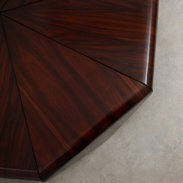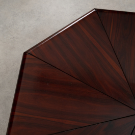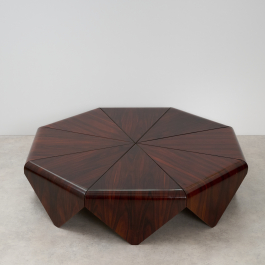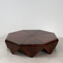 Beautiful and rare 'Petalas' coffee table, designed by Jorge Zalszupin and produced by his own company, L’Atelier, Brazil, 1959. The Petalas table was inspired by the folded paper forms of origami. It is composed of eight petal-shaped panels of layered Jacaranda set on a circular metal frame, together forming an elegant octagonal shape.