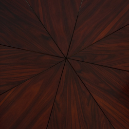 This large coffee table features the natural beauty of Jacaranda wood, with its distinctive dark grain patterns. The surface has been refinished, giving it a warm, rich tone and a smooth finish.