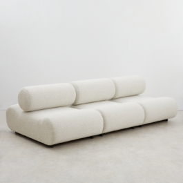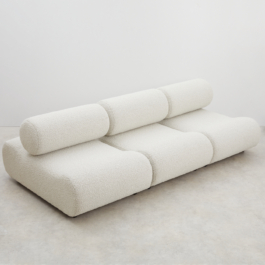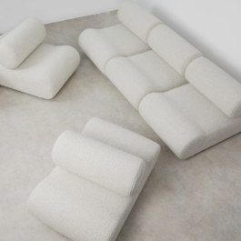 A unique and rare modular sofa system by COR, designed by renowned German designer Klaus Uredat in the 1970s. First showcased at the 1972 Cologne International Furniture Fair in Germany, the Corbi seating elements are upholstered in boucle fabric. This versatile design offers various configurations, functioning as individual chairs, a sofa, or even a bed.