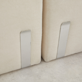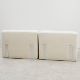 In good condition overall, with minor marks on the metal base. One chair has a minor, faint stain that is barely noticeable.