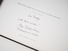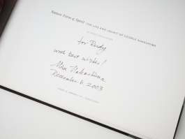 This edition is signed by Mira Nakashima “for Rudy” and dates back to 2003. The condition is very good - the cover remains in excellent shape, with slight yellowing on the corners of most pages due to age.