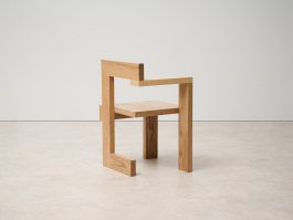 The Steltman chair stands as Gerrit Rietveld's final design, created when he was 75 years old, once again showcasing his pioneering prowess as a designer. The name of the chair originates from Steltman, the prestigious jeweler and royal purveyor, who commissioned Rietveld in 1963 to renovate and furnish his shop in The Hague, Netherlands. The asymmetrical chair, presenting an intriguing image from every angle, was crafted entirely with lines and planes, exemplifying Rietveld's design philosophy. Today, the Steltman chair remains a genuine design classic, a testament to Rietveld's innovative ideas.