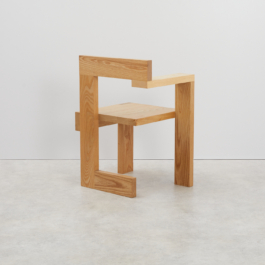 The Steltman chair stands as Gerrit Rietveld's final design, created when he was 75 years old, once again showcasing his pioneering prowess as a designer. The name of the chair originates from Steltman, the prestigious jeweler and royal purveyor, who commissioned Rietveld in 1963 to renovate and furnish his shop in The Hague, Netherlands. The asymmetrical chair, presenting an intriguing image from every angle, was crafted entirely with lines and planes, exemplifying Rietveld's design philosophy. Today, the Steltman chair remains a genuine design classic, a testament to Rietveld's innovative ideas.